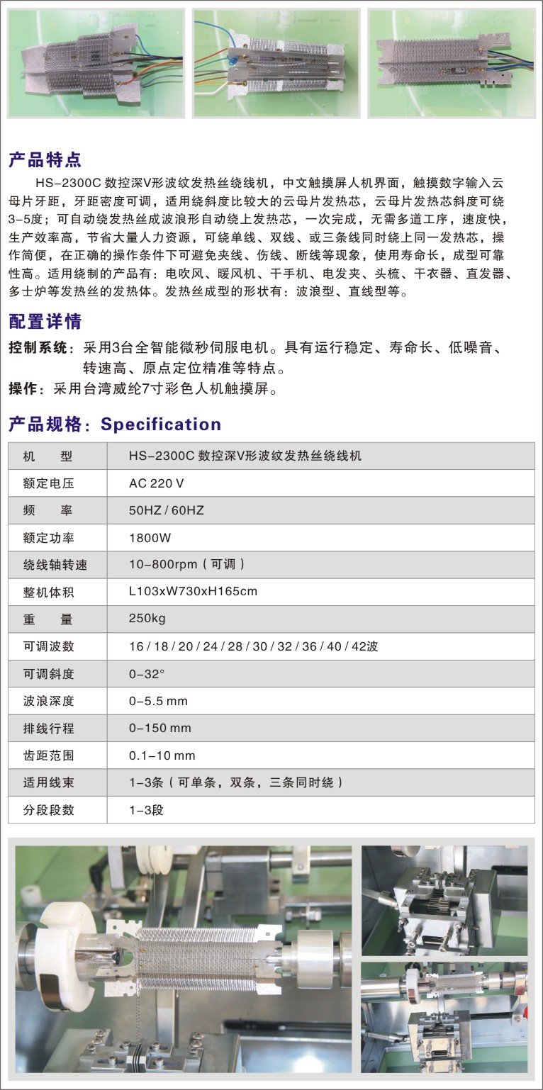 HS-2300C 数控深V形波纹发热丝绕线机